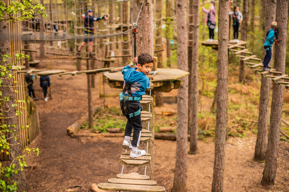 The perfect place for youngsters to enjoy their first high ropes experience, and for under 6s to build confidence. Beginning on a low loop, before heading higher into the tree tops for course elements with a little more wobble and super-fun zips!